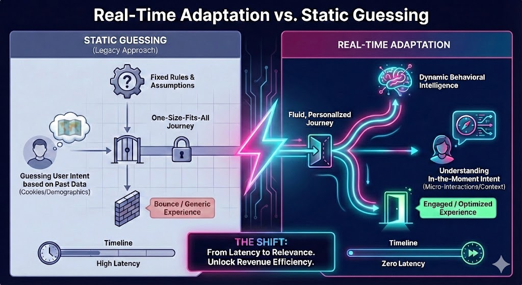 Instead of waiting for a user to complete a journey (or drop off) to analyze their behavior, modern systems adapt the experience in real-time.